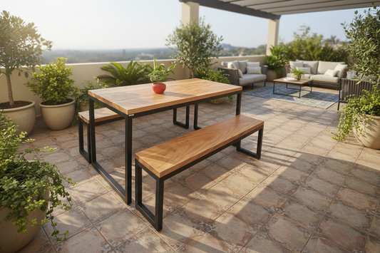 Comedor de Terraza Orio Pino – Mesa Exterior de Madera Natural para Quincho y Patio