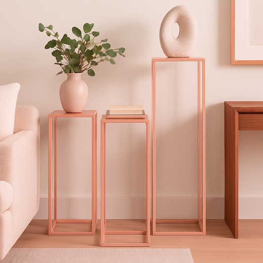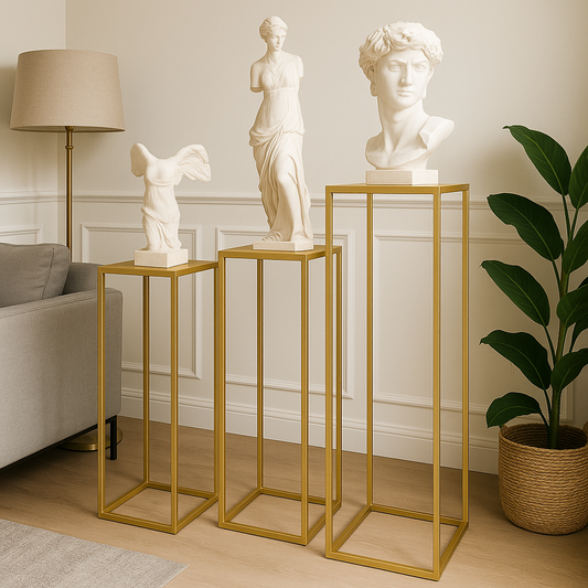 Set de 3 Pedestales Dorados de Acero para Decoración Moderna