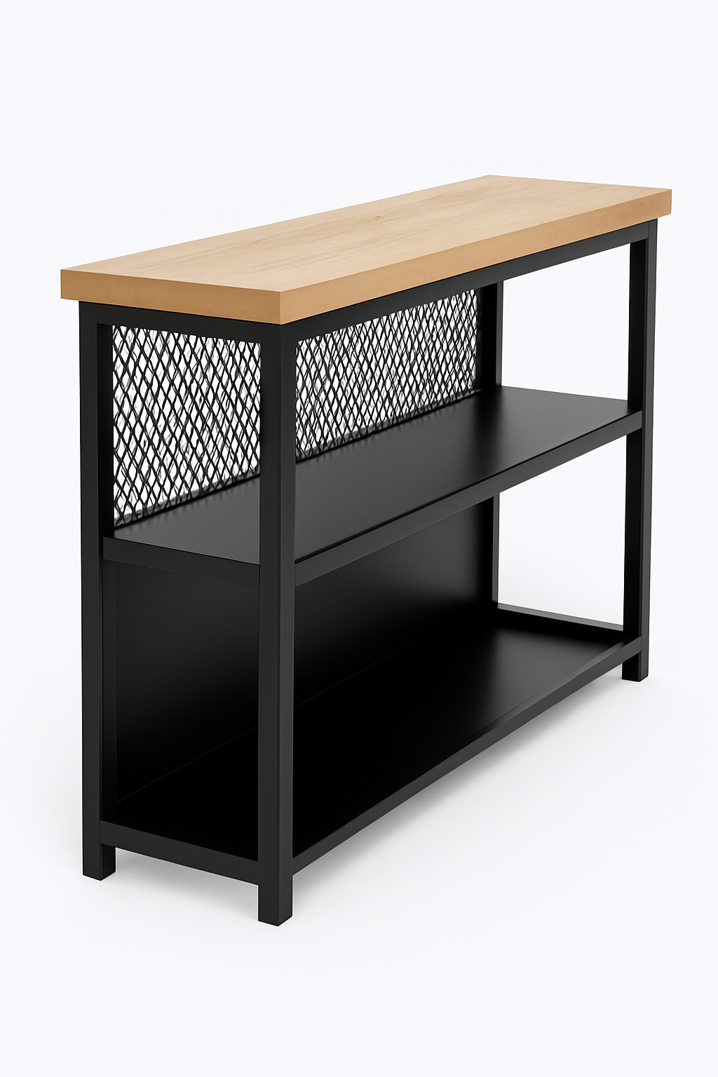 Una pieza que destaca por su diseño robusto y funcional, ideal para bares, quinchos, cocinas abiertas o terrazas modernas. Su estructura metálica y combinación de materiales la convierten en un verdadero ícono del estilo industrial contemporáneo.